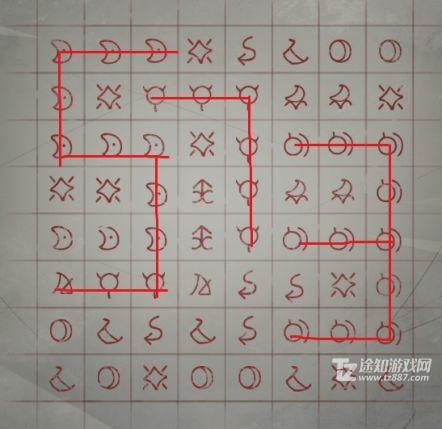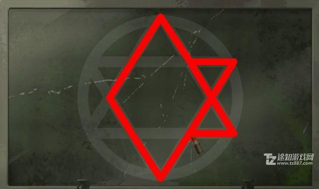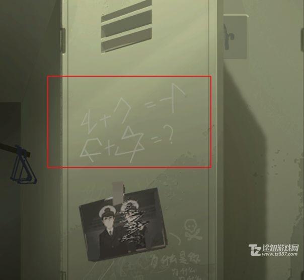 3、根据上尉卡布签名处的3个符号,寻找更衣室登记表背面符号中的三个符号,把相同符号连线,得到密码:573。