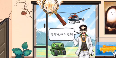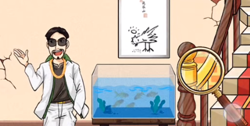 2、拖动放大镜至鱼缸处点击金龙鱼