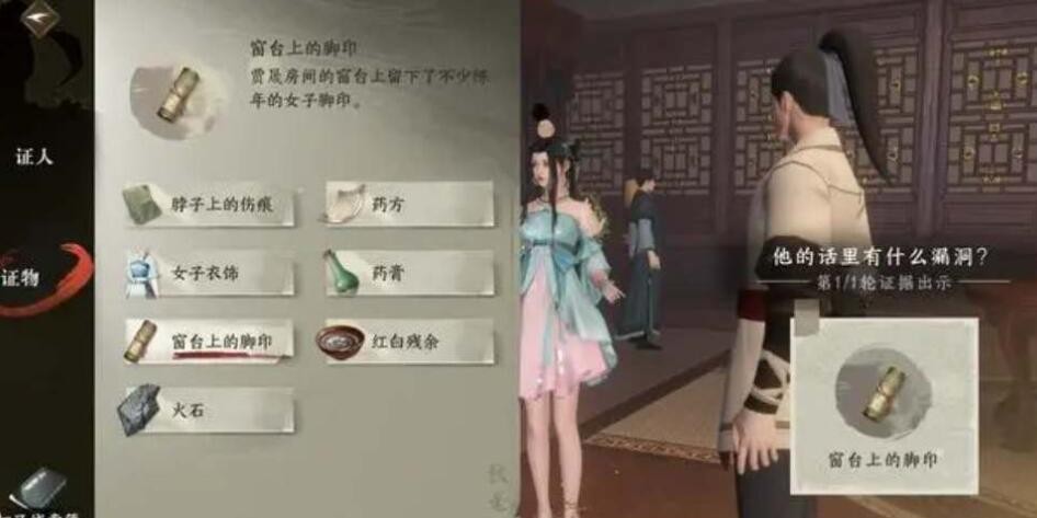 14、第十二个证据,选择“证物,窗台上的脚印”