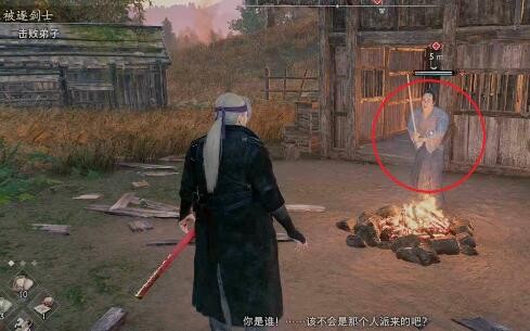 4、来到下图所示的位置和篝火旁的弟子战斗,取得胜利后了解到师父才是砍死其他弟子的人。