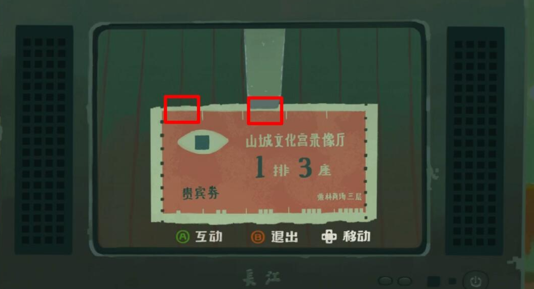 4.门票下方的白色正方形图案按照数字1-5分了五个部分,因为门票是1排3座,所以需要在对应1个正方形和3个正方的上方位置剪票。