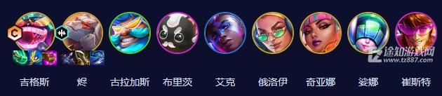 吉格斯、烬、古拉加斯、布里茨、艾克、俄洛伊、奇亚娜、娑娜、崔斯特