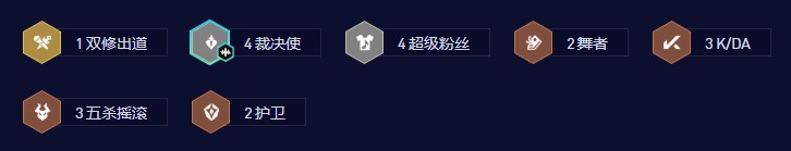 1双修出道、4裁决使、4超级粉丝、2舞者、3K/DA、3五杀摇滚、2护卫