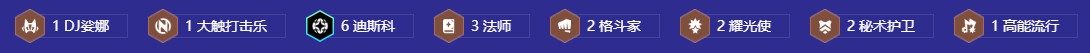 1DJ娑娜、1大触打击乐、6迪斯科、3法师、2格斗家、2耀光使、2秘术护卫、1高能流行