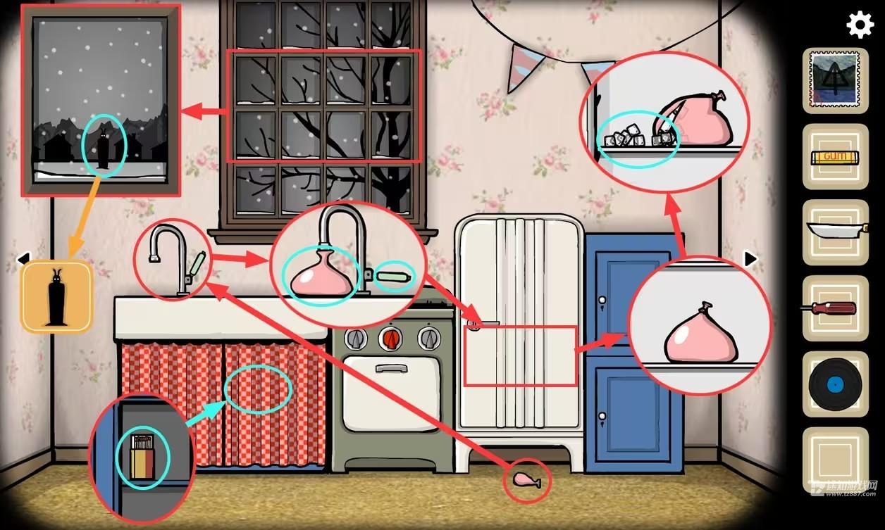 14、点击窗户,点击站在雪地里的兔子先生,获得成就【兔子先生】。