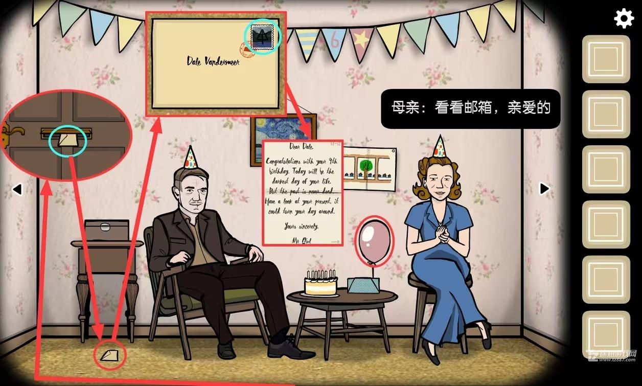 1、父母视角,母亲叫我们去看看邮箱,去之前先点击桌子上的气球让它漏气飞走。