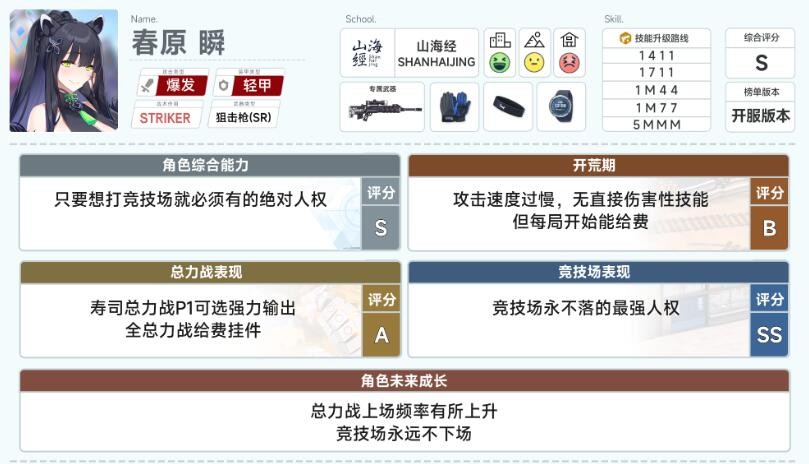贯穿属性的输出型角色,在推图以及总力战等等玩法当中都非常的泛用,单体、群战都是非常好的。