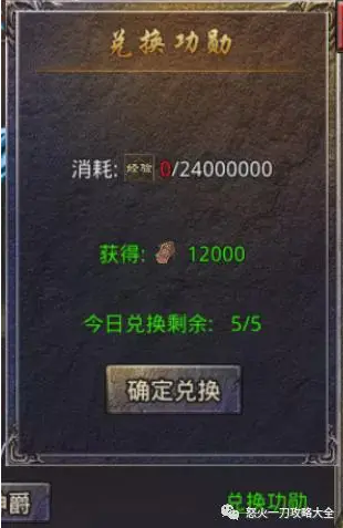 1、功勋可以通过兑换功勋处用经验消耗来换取功勋值,按照自己的等级越高,兑换消耗的经验值就越多,获取的功勋也就越多。(英雄职业同理获得)