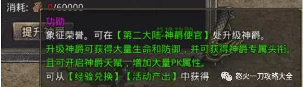 2、可在神爵系统开启的时候在火祭进行火祭,1转级别以上的装备火祭基本都会出功勋值,出现的是主角还是英雄的功勋看几率。(火祭装备级别越高获得功勋值就越多)