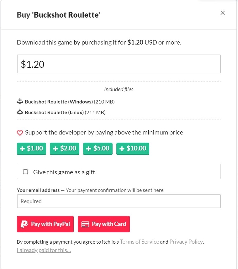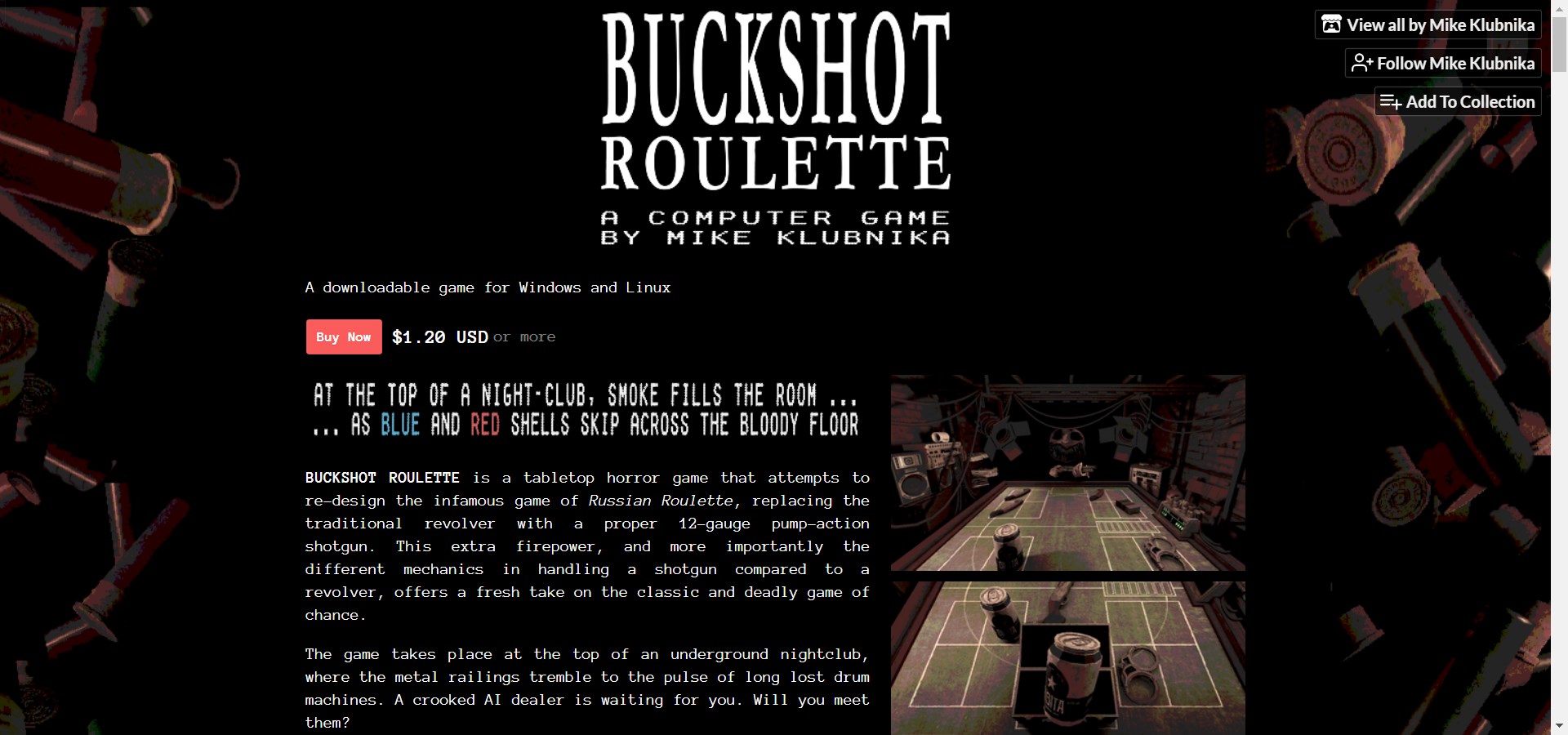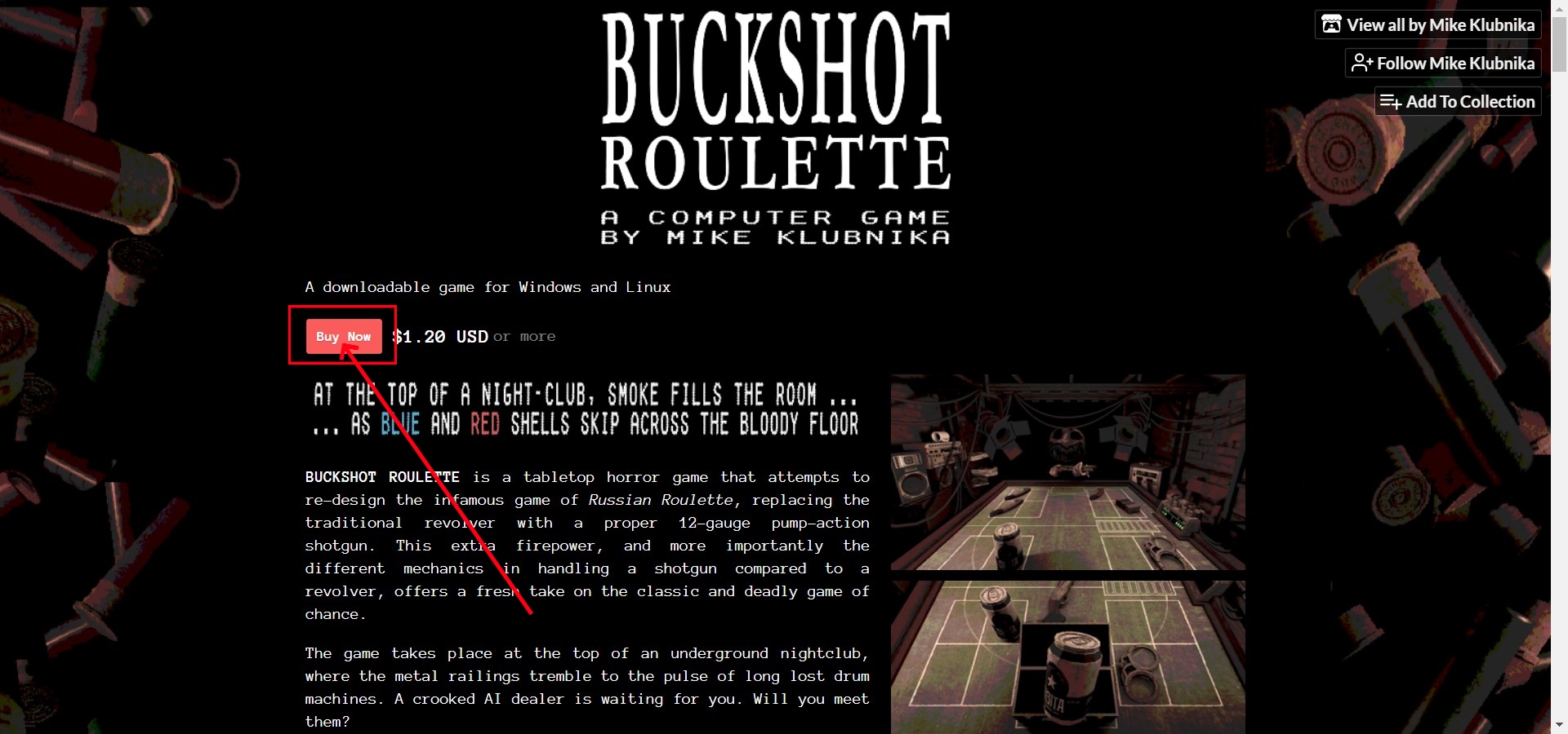 官网地址:https://mikeklubnika.itch.io/buckshot-roulette(复制粘贴到浏览器跳转即可)