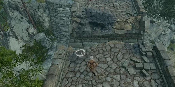 3、到达对面之后,在桥的左边的位置可以看到一个小平台,玩家需要过去探索;