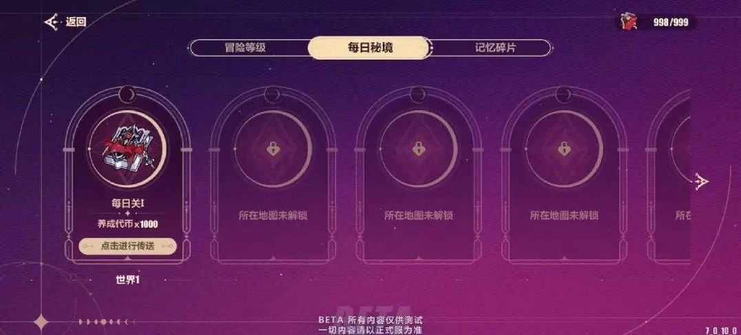 这次活动的每日关卡会散落在地图的各处,需要先探索地图进行解锁。消耗门票进行挑战后,将会获得本次活动的养成代币,可以用于升级前文提到的冒险等级,并提升攻击力、血量以及获取特殊道具。