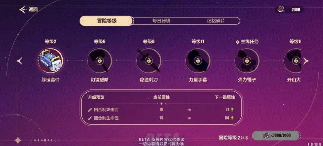 养成代币可用于提升冒险等级,除了能够提升活动中的生命、攻击属性,让我们能够应对更强的敌人,还会解锁一些在探索中至关重要的道具,所以如果遇到搞不定的解密或敌人,不妨先去提升冒险等级,得到能力提升后再进行挑战。