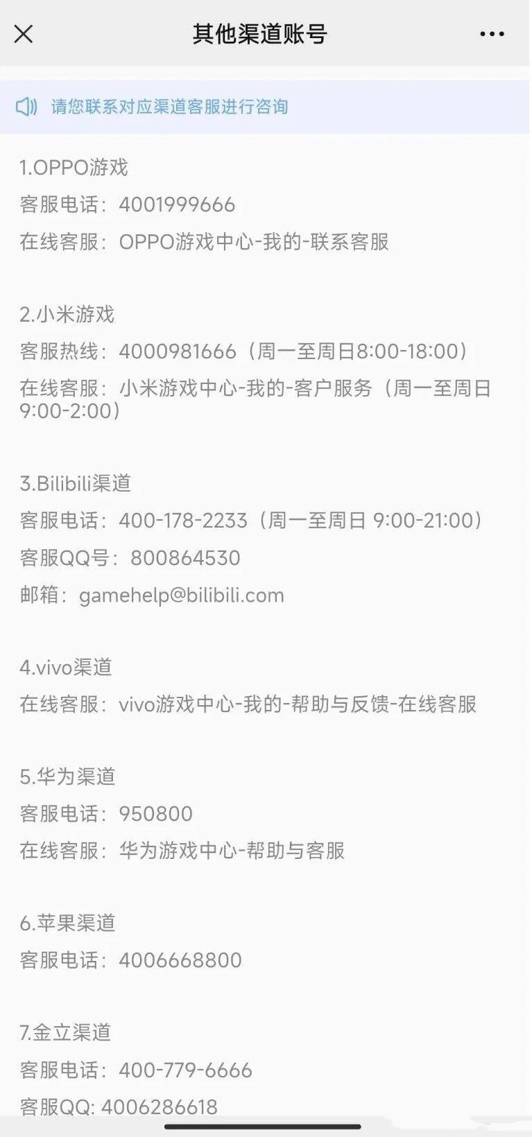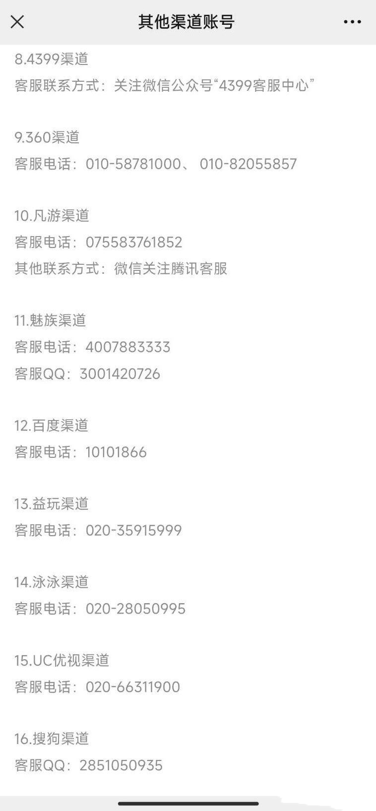 三、其他渠道账号退款联系方式