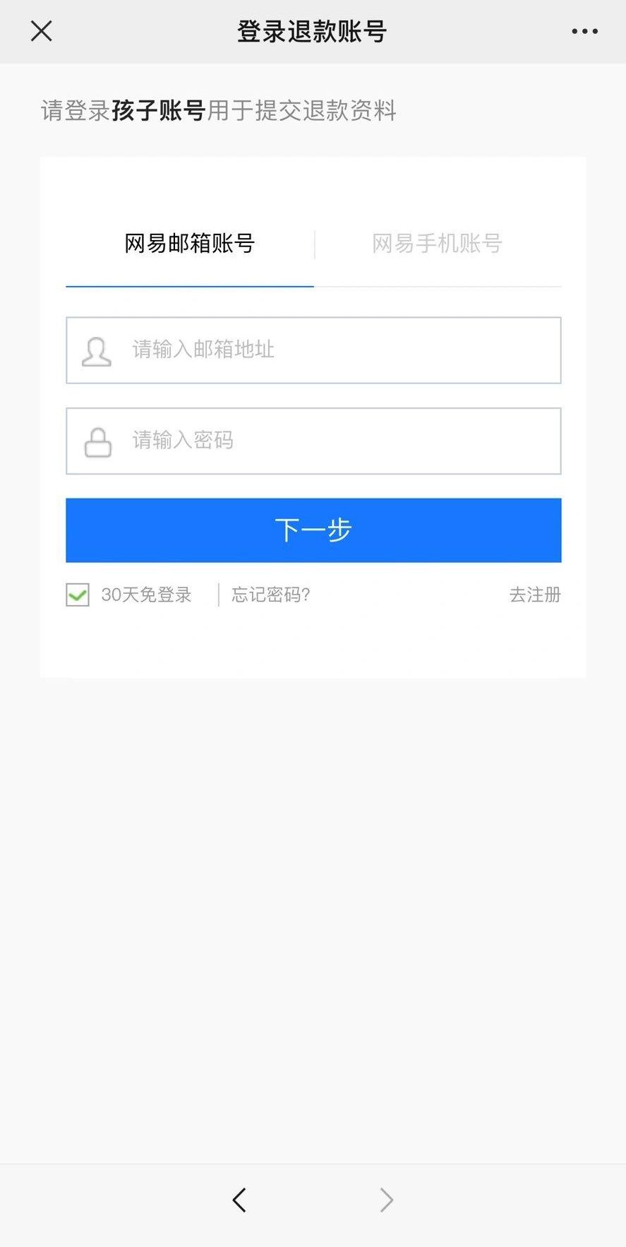 1、微信搜索并关注网易家长关爱平台公众号→我要帮助→退款申请