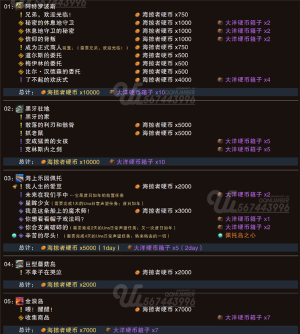 获取方法一共分为三大类,分别是岛屿任务、日常任务和其他。