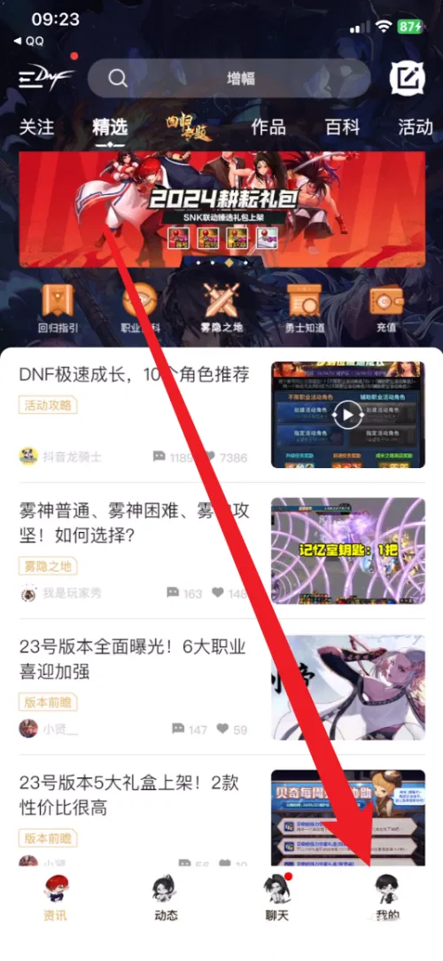 一、在手机中打开DNF助手,进入主界面,点击右下角“我的”