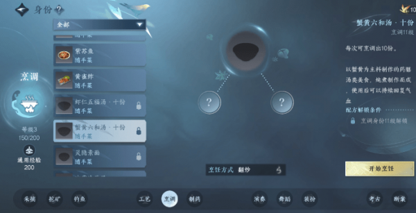 玩家在制作的时候只需要在身份中选择烹调,然后点击蟹黄六和汤就能够进行烹饪了。
