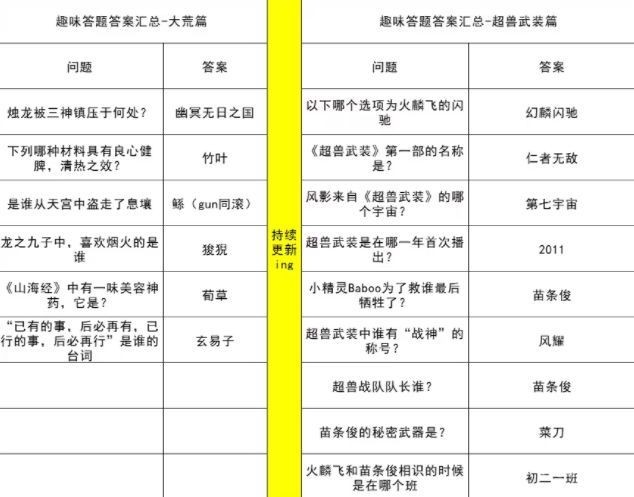 妄想山海趣味答题答案是什么 妄想山海趣味答题答案大全