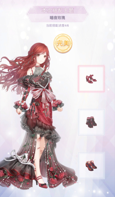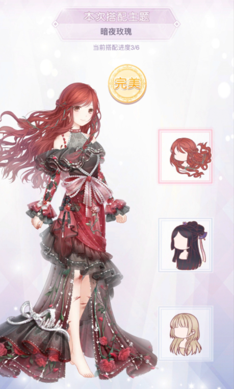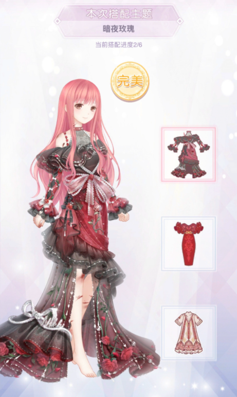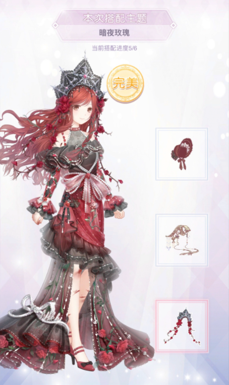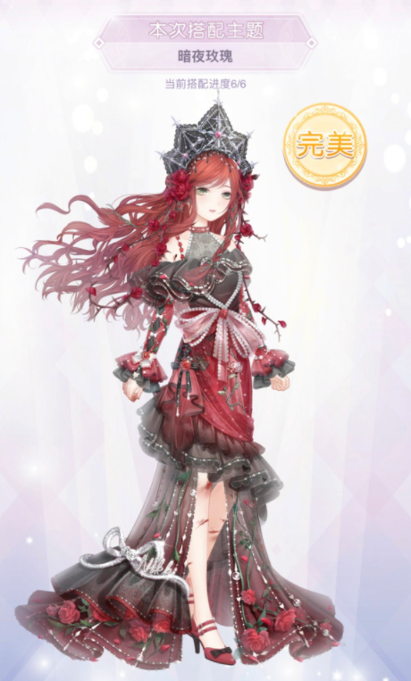 奇迹暖暖暗夜玫瑰完美搭配,请看下面图片: