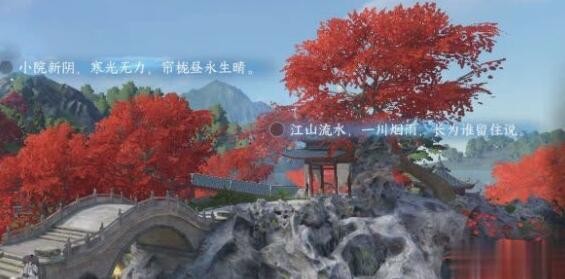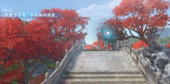 3、玩家继续随镜头移动根据桥头意象写出第二句小院重帘半箔,不妨细雨薇窝。