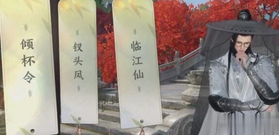 1、玩家首先来到汴京西郊亭的石桥(坐标1558,1183)找到作词的地方,选择倾杯令词牌名。