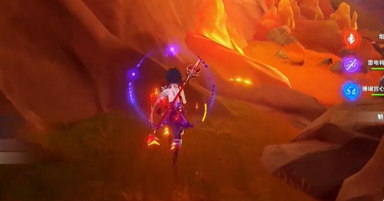 5、第三个水形柱在旁边藤蔓这里,用火烧开就可以移动了。