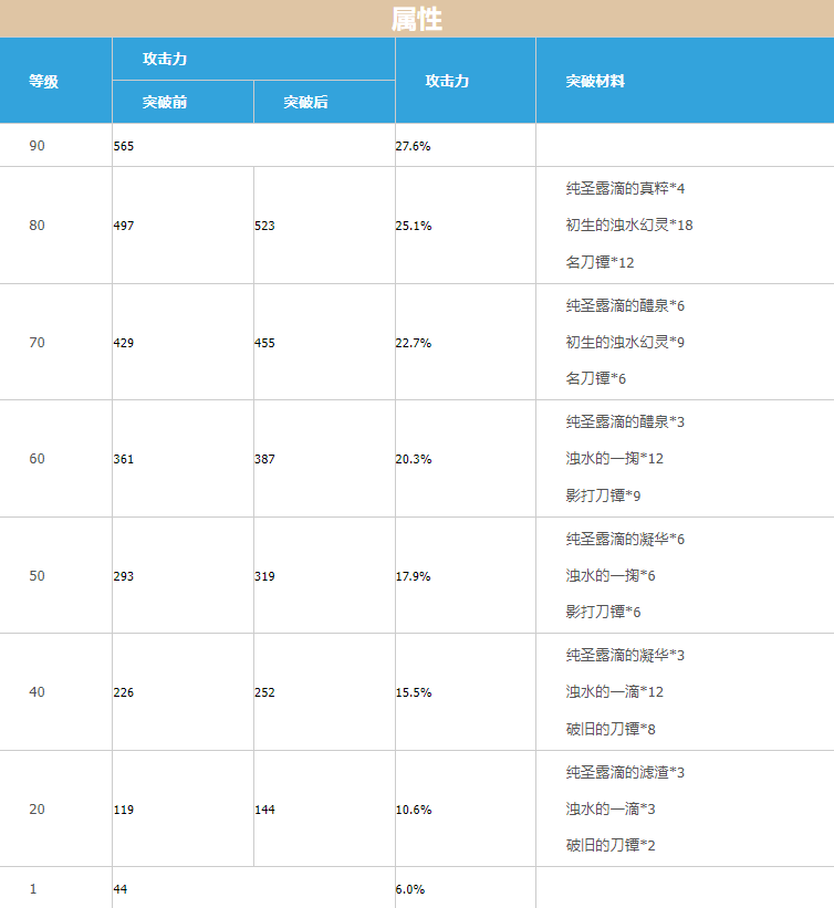 原神4.0锻造武器属性一览: