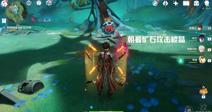 9、找到这里的矿石,朝着棱晶的方向进行攻击。