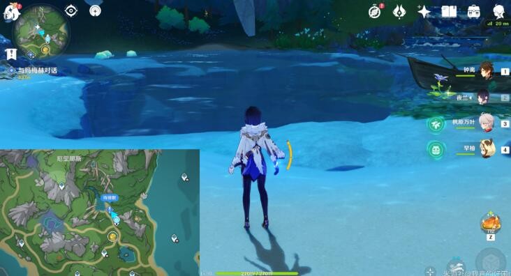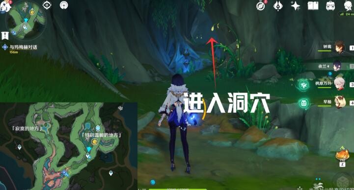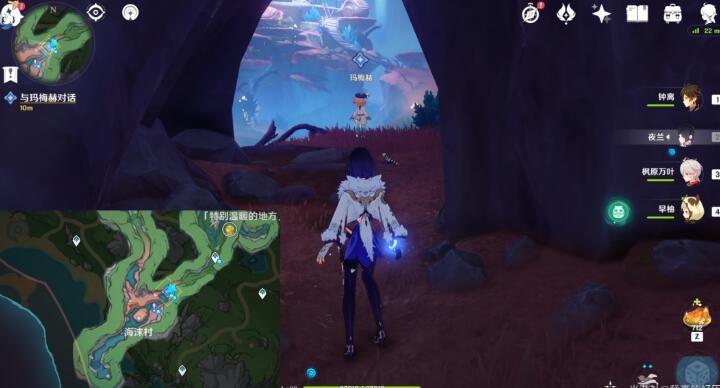 1、首先玩家来到苍晶区七天神像附近,然后在这里找到玛梅赫和佣兵团对话。
