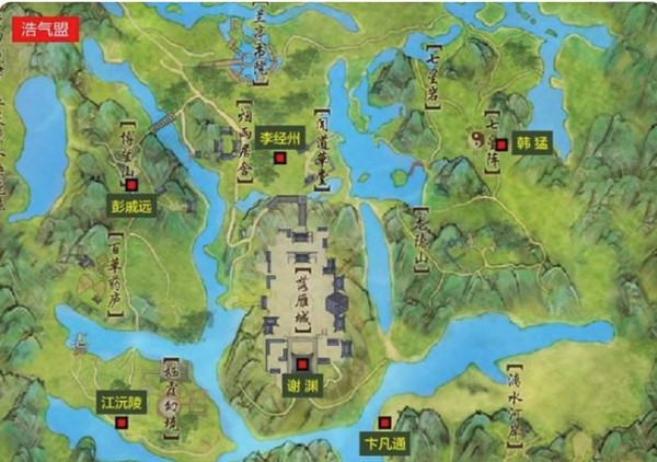 详细NPC位置和名称如图【卞凡通,江沅陵,彭戚远,李经州,韩猛】