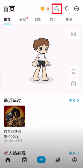 2、进入主界面点击右上角的“放大镜”搜索