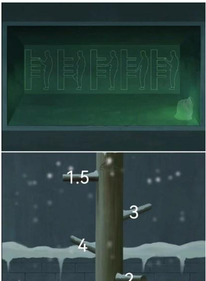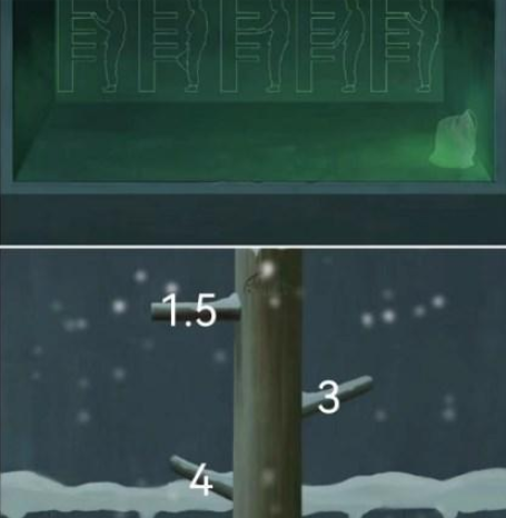 15、浑天仪雪,梅花开了,打开下面密码锁左54、右36得到一半的圆盘,倒流瀑布用青铜锤杖敲碎放入圆盘。