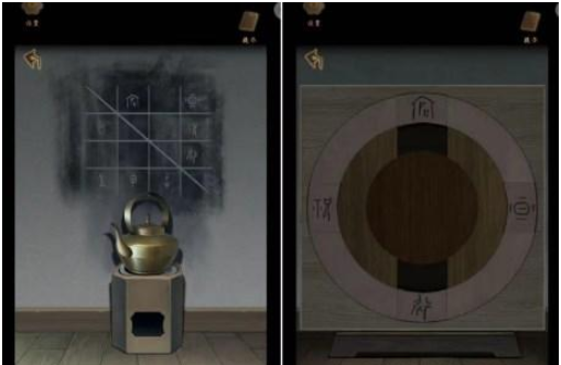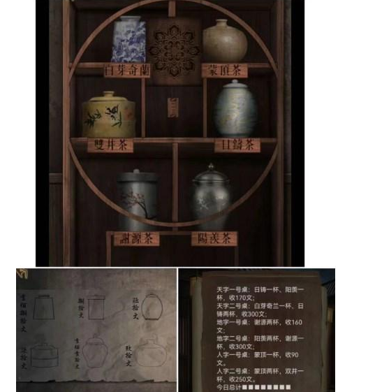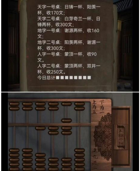 4、根据墙上信息移动茶罐得到叶子戏牌,按照总计拨动算盘得到叶子戏牌。
