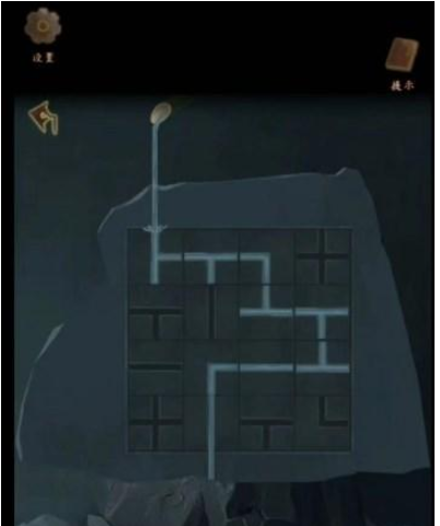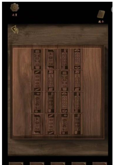 6、根据地图右上左上右,上山,完成两尊神像下面的华容道,根据图案以及门柱对应信息打开中间的塔,进入。
