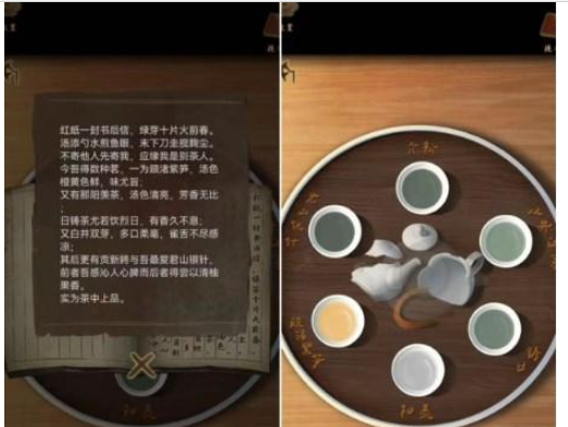 12、然后点茶壶按名字摆放,点几杯尝尝,得到细长的铜片,勾开右边书柜下面的柜子得到蓖麻油和朱砂粉。