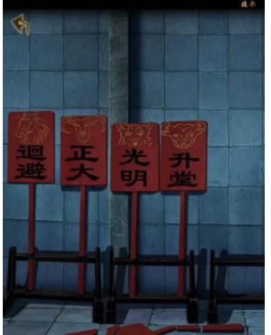 5、左边房间,左边位置得到水火棍,墙上信息摆放正大光明牌子得到小钥匙。