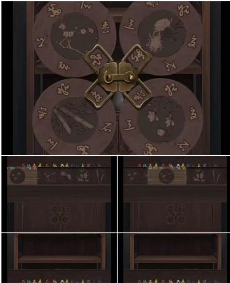 16、左边架子上方得到知县的官印,放入带孔木板,滑动得到梅兰竹菊信息打开柜子得到雕像的手臂。