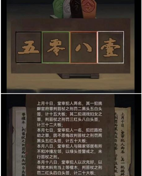 17、公堂,给人偶安装头颅和手臂,在盒子里放入知县的官印,根据审案记录解二元一次方程,打开签筒黑绿红白5081,得到虎眼。