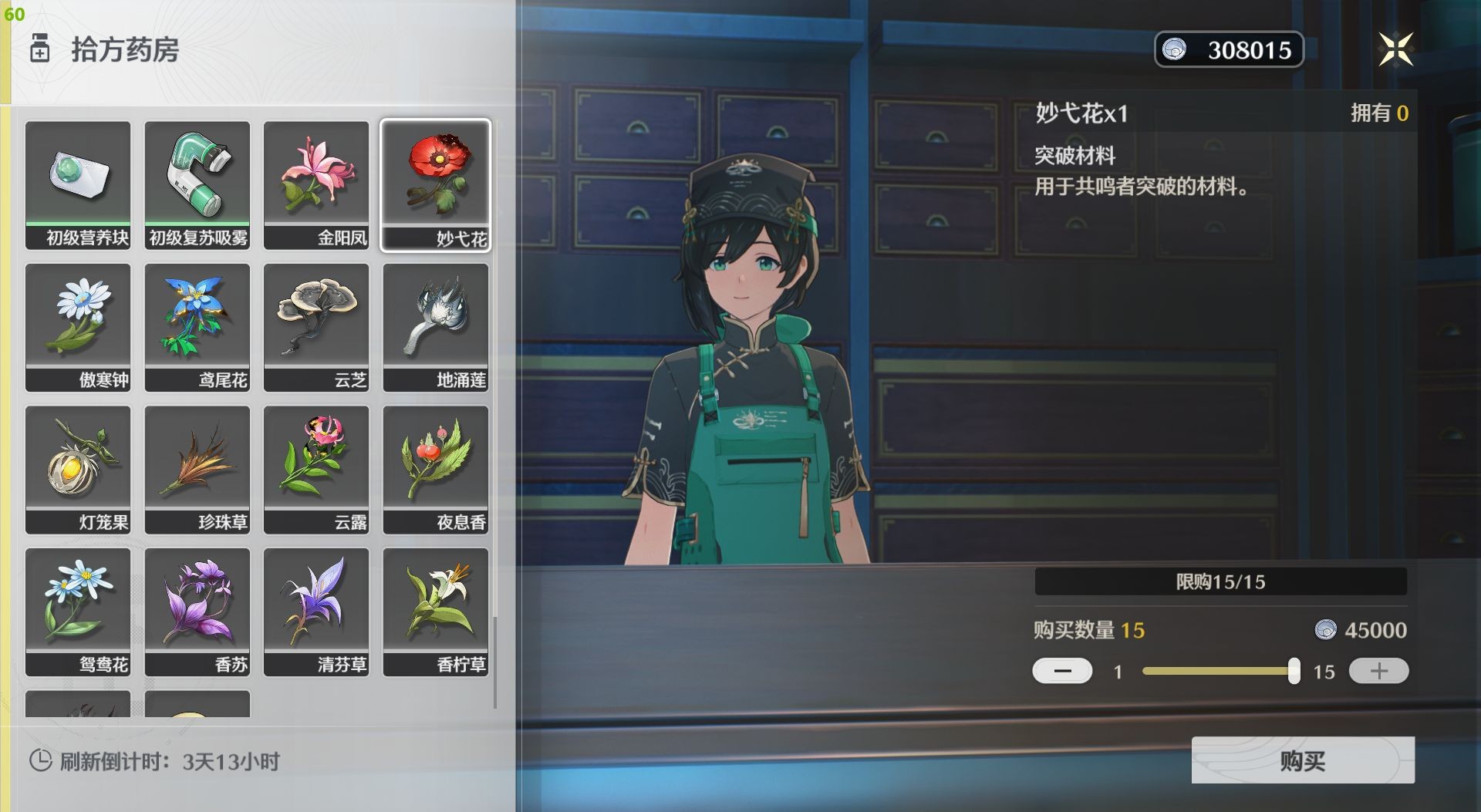 鸣潮地涌莲在哪 地涌莲采集路线图文攻略 时间:2024/10/18 07:52:22小编:来源: 鸣潮地涌莲在哪采集?地涌莲是游戏里的一种角色突破材料,我们在大地图就可以采集到的,渊武角色突破材料会需要。很多小伙伴不知道在哪可以采集到地涌莲。那么来和小编一起看看《鸣潮》地涌莲采集路线图吧。 《鸣潮》全角色突破材料采集攻略大全 云芝 吟霖、凌阳、莫特斐 金阳凤 忌炎、安可 妙弋花 维里奈、丹瑾、炽霞 鸢尾花 卡卡罗、桃祈 灯笼果 鉴心、白芷 傲寒钟 散华、秧秧、秋水 地涌莲 渊武 紫珊瑚 漂泊者 《鸣潮》地涌莲采集路线图 一、拾方大药房购买(每次可购买15个) 二、地图采集 一图流 相关文章 攻略心得 波西亚时光隐藏宝箱位置全介绍 波西亚时光隐藏剧情有哪些? 炉石传说酒馆战棋新随从野猪老水手怎么样 炉石传说酒馆战棋野猪人随从 无限暖暖满电行动效果及获取方法 暖暖无限少女 原神5.0食谱有哪些 原神5.0新增食谱获取方法 王者荣耀九周年返场皮肤有哪些 王者荣耀九周年返场皮肤介绍2024 阴阳师大江山宴会邀约怎么玩 阴阳师大江山抉择怎么选 明日方舟第三季更新预告:第三季何时上线有哪些新内容 热门推荐 最热排行 评分最高 超进化物语 下载 阴阳师 下载 吉吉影音 下载 元气骑士 下载 率土之滨 下载 梦幻西游手游 下载 荒野行动 下载 元游中国象棋 下载 蛋仔派对 策略 1.95 GB 蛋仔派对手游 v1.0.220 - 安卓版 下载 神庙逃亡2 冒险 78.68MB 神庙逃亡2 v5.0.0 - 安卓版 下载 恋与制作人 角色 688.37MB 恋与制作人 v1.9.0823 - 安卓版 下载 天天斗地主 休闲 26.10MB 天天斗地主 v8.00.041 - 安卓版 下载 我的安吉拉 模拟 80.53MB 我的安吉拉 v4.2.1.306 - 安卓版 下载 无尽的拉格朗日:砺舰归来 下载 unVEIL the world 下载 燕云十六声 下载 元气骑士前传 下载 元气骑士 下载 战魂铭人 下载 阴阳师 下载 率土之滨 下载 梦幻西游手游 策略 182.11MB 梦幻西游手游 v1.532.1 - 安卓版 下载 蛋仔派对 策略 1.95 GB 蛋仔派对手游 v1.0.220 - 安卓版 下载 游戏王:决斗链接 策略 303.87MB 游戏王:决斗链接 v1.0 - 安卓版 下载 三国演义:吞噬无界 策略 479.74 MB 三国演义:吞噬无界 v4.1.14 - 安卓版 下载 超进化物语 策略 282.66 MB 超进化物语 v1.1.18 - 安卓版 下载 用户评论 deving
