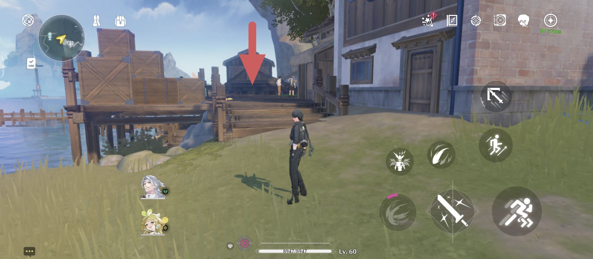 1、从传送点出来后从房子处往下跳