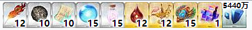 总计:凤凰羽毛*12、世界树之种*10、禁断书页*10、神脉灵子*15、梦幻的鳞粉*15、血之泪石*12、封魔之灯*12、智慧之圣甲虫像*15、传承结晶*1、量子*5440万